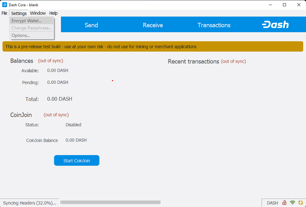 The following section will detail the steps you need to follow if you choose to encrypt your Dash wallet later.