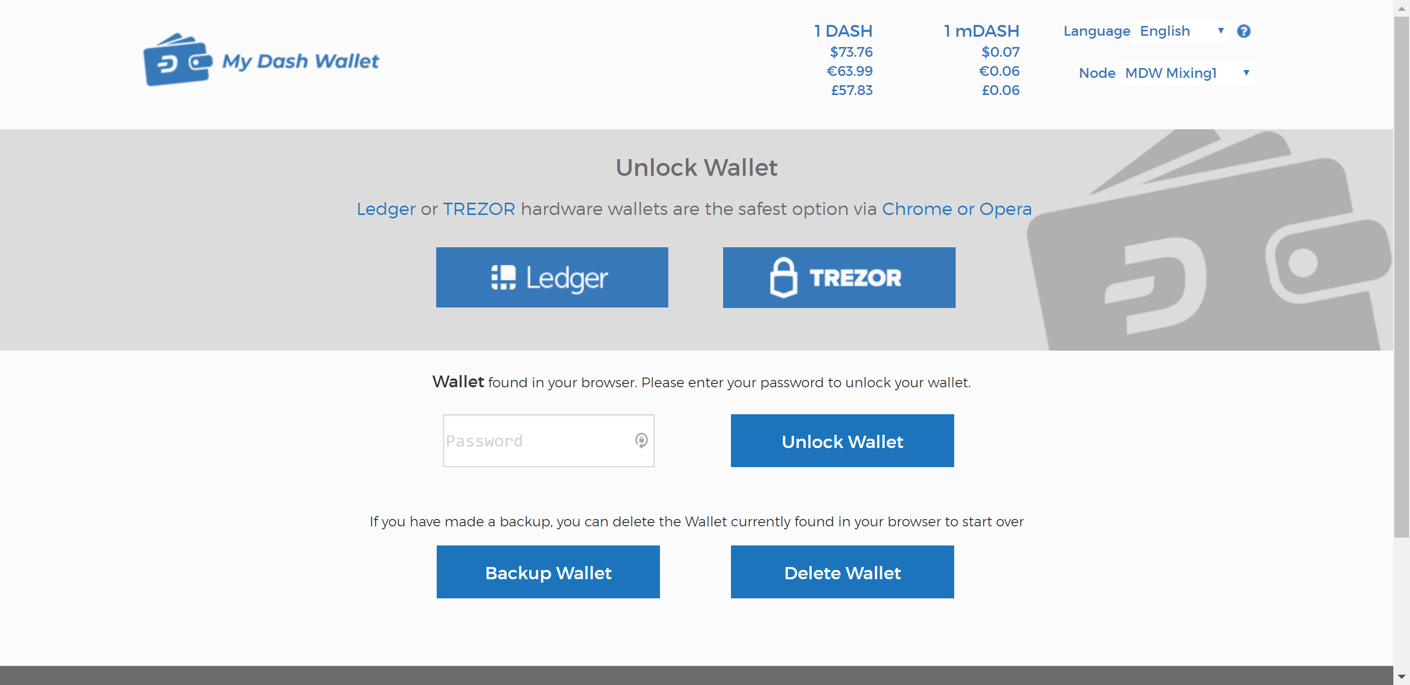 Please note that web wallets may not be as secure as alternatives such as hardware wallets. Be aware of the risk of storing large amounts of Dash in keyfile wallets, since they are an easier target to attack than mobile or hardware wallets.